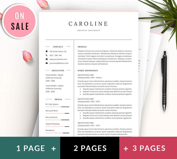 Modern Resume Cv Template 1 3 Page Professional Resume Etsy Resume Template Word Cv Template Creative Resume Printable Blank Simple Resume Template
