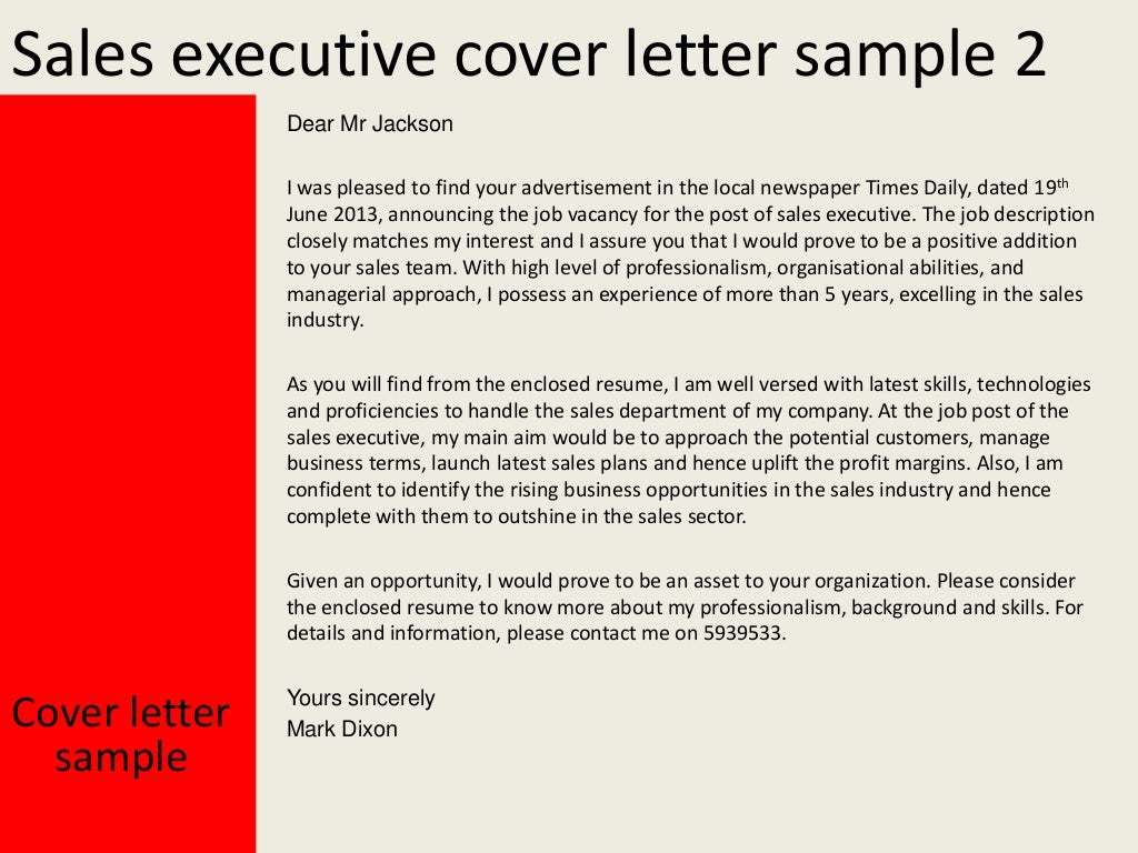 Sales Executive Cover Letter Resume Template Examples Of Resume Cover Letters